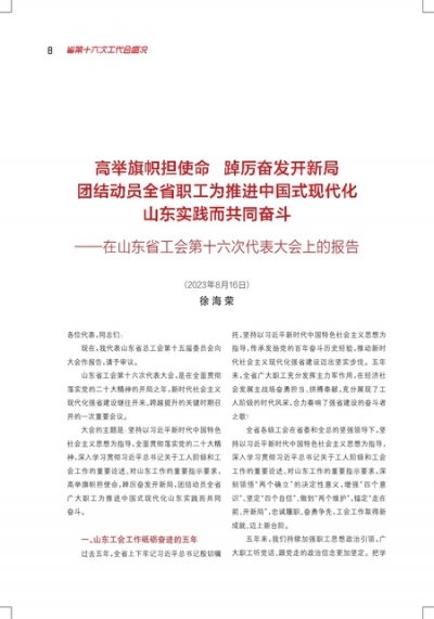 高举旗帜担使命 踔厉奋发开新局 团结动员全省职工为推进中国式现代化山东实践而共同奋斗