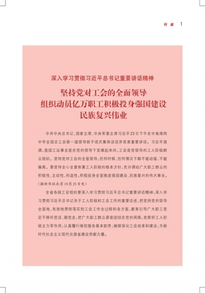 坚持党对工会的全面领导组织动员亿万职工积极投身强国建设民族复兴伟业