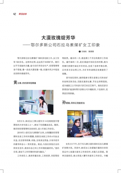 大漠玫瑰绽芳华——鄂尔多斯公司石拉乌素煤矿女工印象