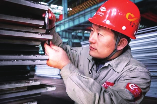 2020年,厂里接到了山东省新旧动能转换先行区黄河大桥建设的订单,其中有一个6毫米钢板板材,对于宽厚板轧机而言难度非常大,这个数值已经接近厂里生产线生产规格的极限。李子高回忆当时的经历说道:“轧钢板就像擀饺子皮一样,轧6毫米的钢板就相当于把水饺皮擀得像A4纸那么薄,难度相当大,擀得越薄就越容易起褶皱。”经过一遍遍试验,反复试轧,对轧钢工艺进行调整,对职工操作进行规范,最终李子高带领团队解决了这一技术难题,提高了尺寸控制精度和生产节奏。