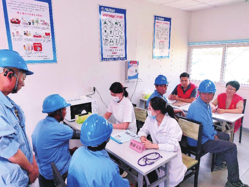 2022年7月,一辆驿站流动服务车到涝淄河改造工地开展服务,随车医务人员在为建筑工人测血压时发现,一名工人的血压高达210毫米汞柱,情况非常危险,医务人员立即联系工地负责人,帮助该工人及时就诊。