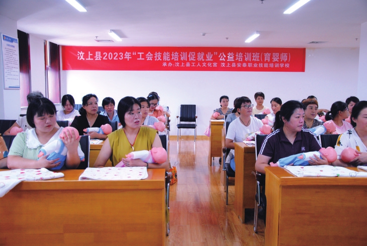 目前,汶上县工人文化宫联合县安泰职业培训学校先后举办育婴师、保育员、剪纸、中式面点、直播带货等公益培训班15期,累计培训全县各行各业职工群众500余人次。