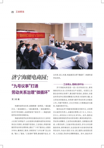 济宁海能电商园:“九号议事”打通劳动关系治理“微循环”