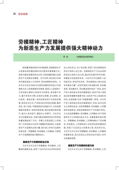 劳模精神、工匠精神为新质生产力发展提供强大精神动力