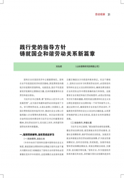 践行党的指导方针 铸就国企和谐劳动关系新篇章