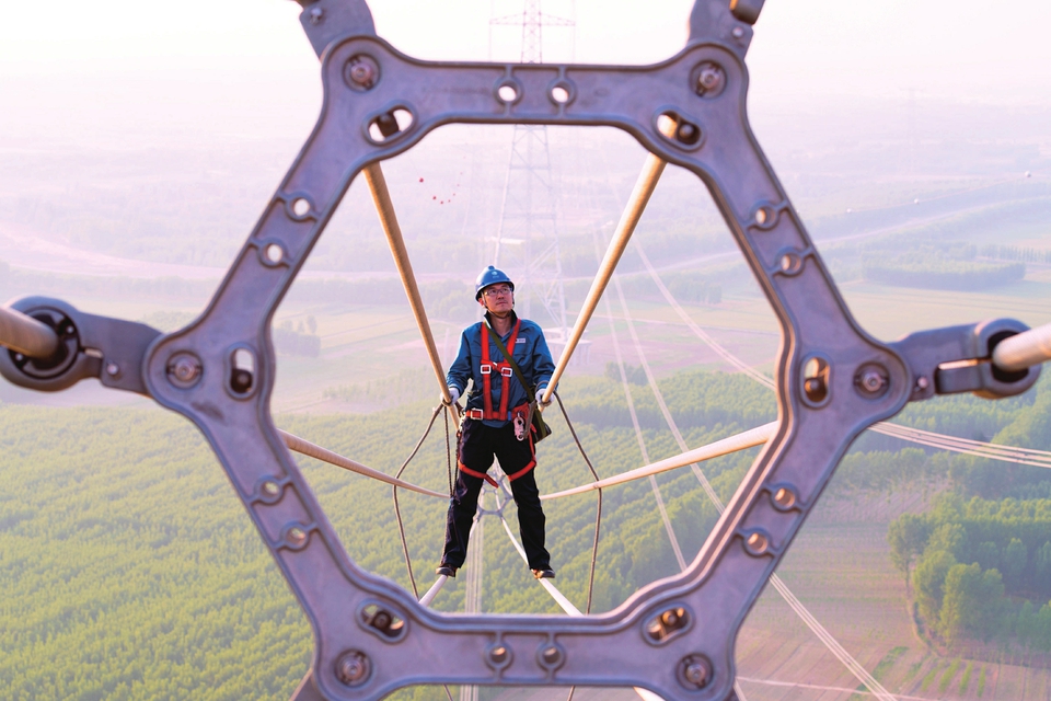 王进这人不但不笨,反而很聪明。有点时间,就开始翻弄各种输电线路的参考书,以及塔形金具的图纸——从门形塔到酒杯塔,从单回线路到同塔双回,哪种塔形应该怎样攀爬,一点一滴地去揣摩要领。师傅的指导、同事的建议、个人的观察,都一一记在心里、干在手上;和外包务工人员一起挖坑,一起抬底盘,一起排杆;穿着笨重的棉衣,扎紧安全带,一遍遍爬塔,一趟趟走线……几个月过去,王进手上磨出了老茧,肩膀厚了、脸黑了、身体壮了、手指灵活了,随之操作也越发规范了……项目结束时,善意的嘲笑消失了,连师傅的批评也隐形了。