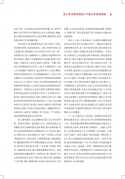 以党的二十届三中全会精神为指引,全面推进济南工会工作改革创新