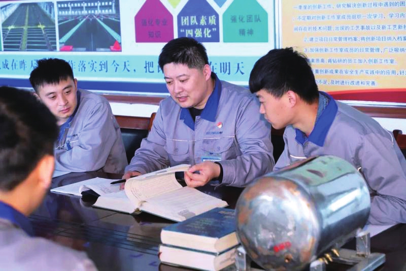 通过组织开展“小发明、小创造、小革新、小设计、小建议”为主要内容的“五小”创新活动,栾会光他们提出“将喷吹系统改为热风喷吹,把制作好的气阀设计改为下部常开式结构”的“小革新”,开创了所有布袋喷吹设计的新思路,并于 2016年 1月获国家实用新型专利。“我们在创新工作室的基础上,大力开展车间工匠孵化工作,通过岗位技术比武和技能竞赛活动,引导车间选拔培养一批以班组长、岗位能手、先进工作者为主的班组匠人,并在车间内部成立工匠孵化工作室,员工队伍的整体技术水平都得到显著提升。”