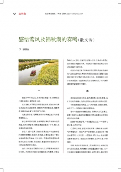 感悟莺风及锦秋湖的奏鸣(散文诗)