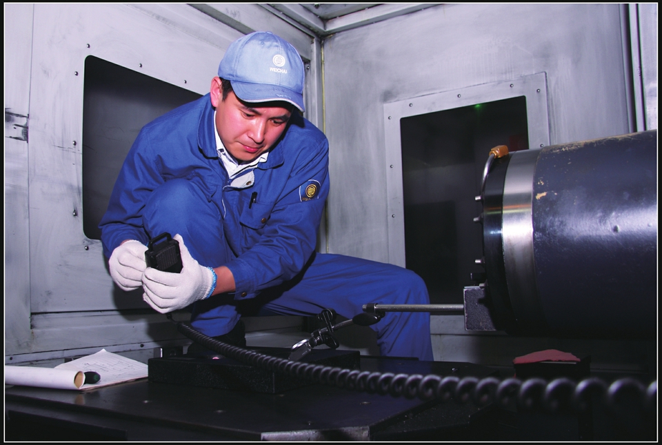 2008年到2011年,是潍柴的爆发期,产品供不应求,设备更是连轴转,几乎没有保养时间。一段时间,加工的神经系统光栅尺频繁损坏,15台加工中心的45支光栅尺,故障率高达47%,单单这一项年维修费用就得80多万元。王树军凭经验判断,这些进口设备可能存在某种设计不足,或者说不适应目前的高负荷运转状态,想给它们动“手术”。“放开干就行,出了事我给你兜着。”关键时刻,厂领导又站出来作后盾。一周的时间,王树军寝食难安,满脑子都是这图那图。查找隐患,必须钻到加工中心工作台得底部,空间狭小,趴下后一点点地往前挪,一待就是一两个小时。7月份本就天气湿热,人爬出来时浑身都是汗水和油污,腿脚也麻木不堪。功夫不负有心人,“病根”被他排查了出来,涉及五个方面的问题,王树军逐一提出解决举措,并设计了一套独立的气密保护气路。经多次模拟实验,成功完成了对新设备的改造,故障率降到1%以下。