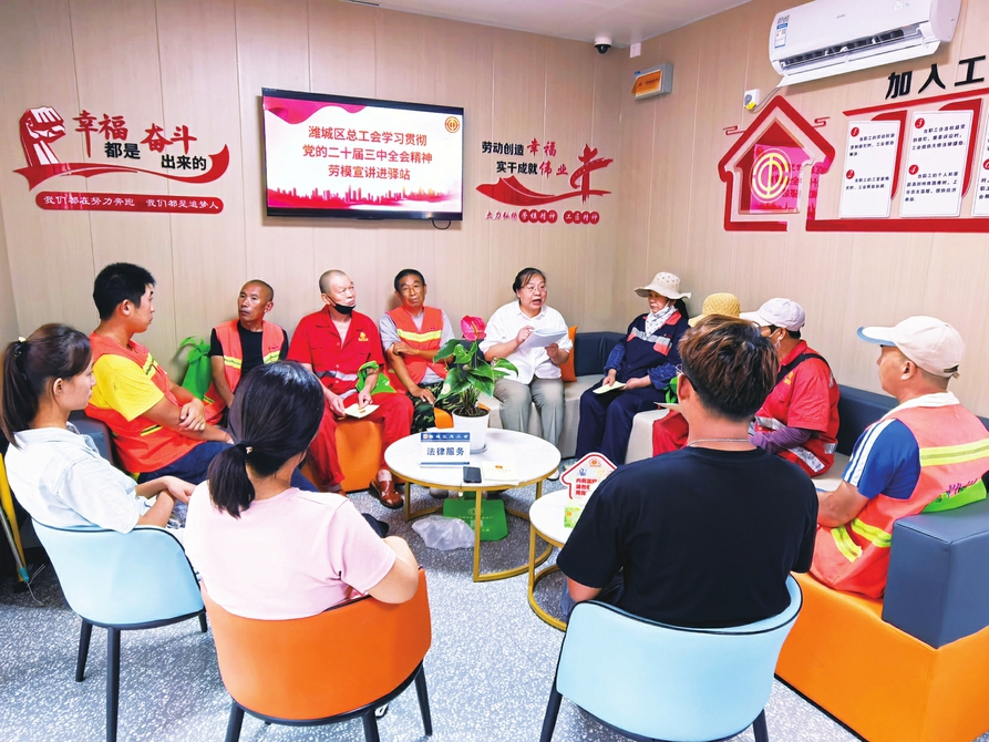 近日,记者走访城区多家工会驿站发现,驿站内除了有微波炉、饮水机、多功能充电器等设施外,还在显眼位置悬挂了“坚定不移听党话、矢志不渝跟党走”等理论标语,让前来休息的户外劳动者们在潜移默化中自觉加强政治理论学习,让“小驿站”发挥“大作用”,真正成为正能量的“发散地”和文明城市的“新窗口”。