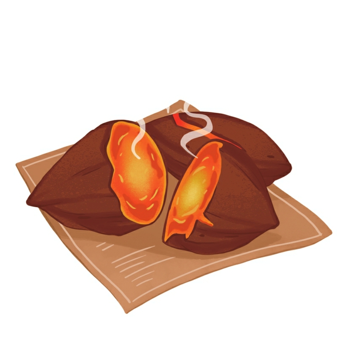 长大后,吃过各种名目的地瓜,酒店里的自助餐小甜点,自家空气炸锅烤蜜薯,但是,都不如小时候白皮炉子烤地瓜“那一口”好吃。似乎缺少点什么东西,就像汪曾祺先生怀念在昆明时过穷日子,地瓜的“那股子土腥气”,我怀念的是凝结在食物之上人与人之间的朴素情感。一想起来,恍若地瓜会唱歌,迎着呼啸的北风,它用金色的嗓音,把路人的身体烘暖,连同那些夜幕下为生计奔波的打工人。