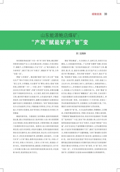 山东能源鲍店煤矿:“产改”赋能矿井“智”变