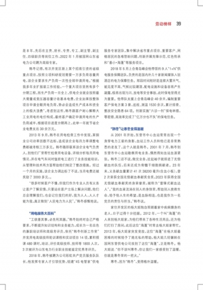 韩冬:做人民的电力卫士